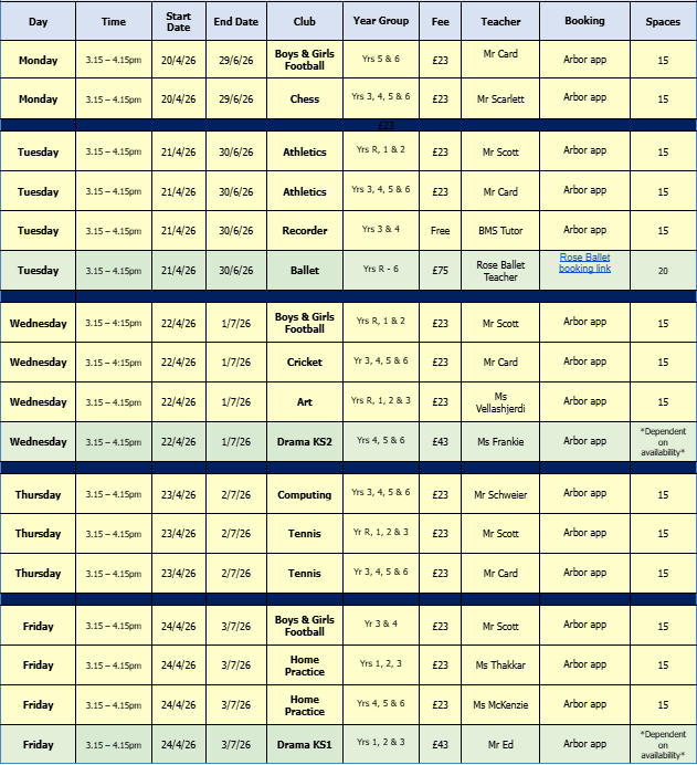 The school also offers some free places for children (5-11) who receive benefits related free-school meals under the Holiday activities and food programme (HAF).